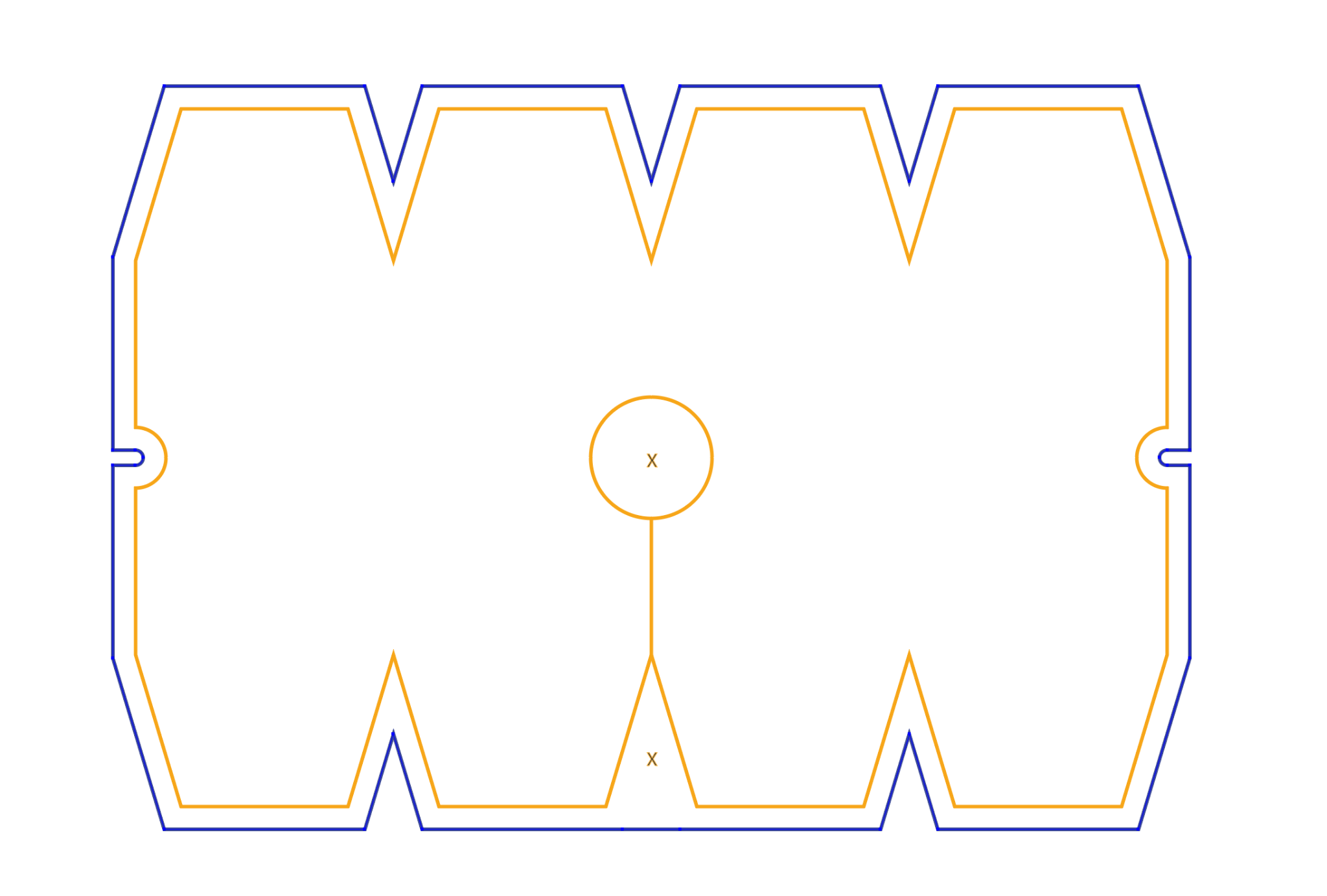 Инструментом создания точек мы создаём на пересечении границ объектов на вырезе создаём новые точки (горячая клавиша +), затем удалим те, которые нам не нужны. Поставим символ «Х» внутрь выреза, дублируем на противоположную сторону выточки, создаём контур на весь матрас.