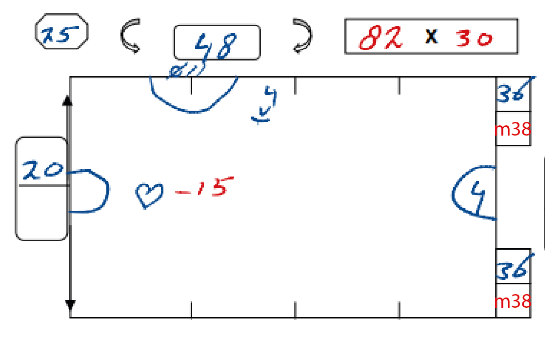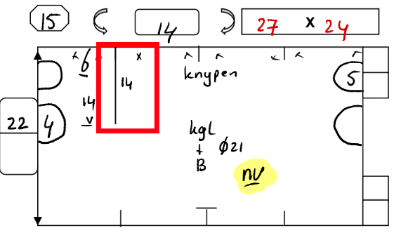 Вы можете увидеть, как выглядят сплиты на замерном чертеже. На одном из чертежей сплит стоит прям на «волне» и посчитали его по короткой стороне (kk), о которых мы рассказали в статье о «волнах».