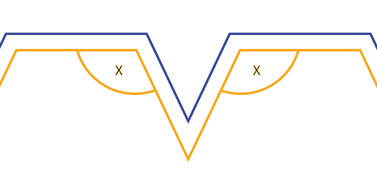 Подобные вырезы не редко «стоят» на выточках и нам нужно поделить его на две части. Дабы разделить такой вырез равномерно, мы ставим вырез центром к краю выточки.