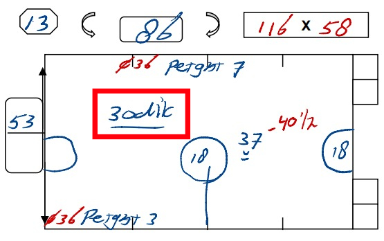 Создаём прямоугольник, нажав горячую клавишу «M», вписав ширину и высоту, которая указана на замерах.