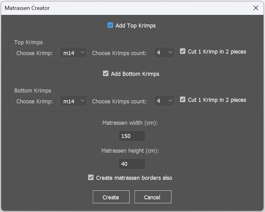 Далее – панель создания матраса. Ширина, высота и «галочка», которая отвечает за создание самой основы матраса.