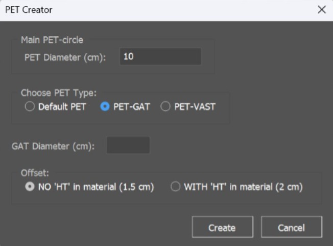 Меню создания PET-ов