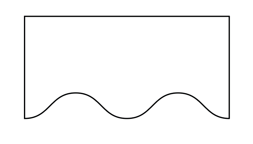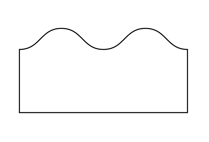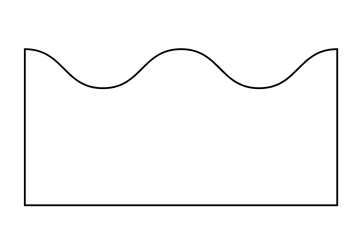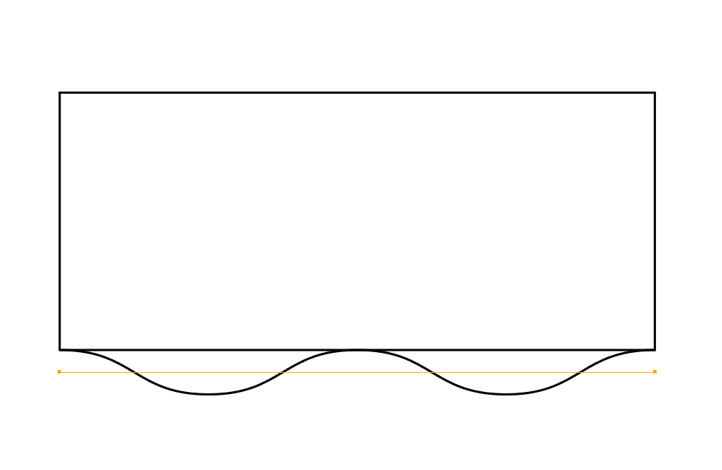 По сути, принцип всё тот же, но с отступом в противоположную сторону, то есть внутрь прямоугольника: создали прямую, по оси Y отступ в + (если верхняя) или в – (если нижняя) половину от общей высоты волны.