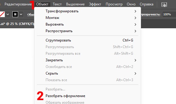 Выделяем объект волны, переходим: «Объект» > «Разобрать оформление»