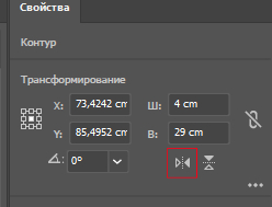 Затем, отразите вторую волну по горизонтали нажав кнопку отвечающую за эту функцию (в свойствах около координат и размера).