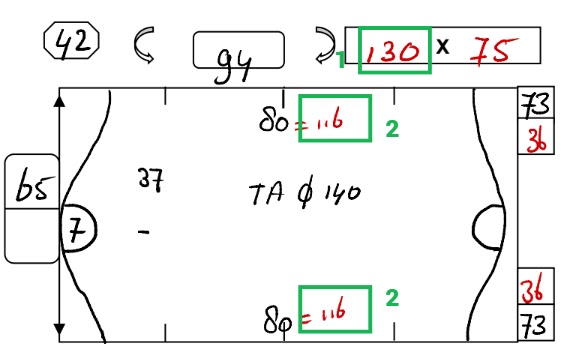 Берём общую ширину 1 (130) и от неё отнимаем короткую ширину 2 (116):