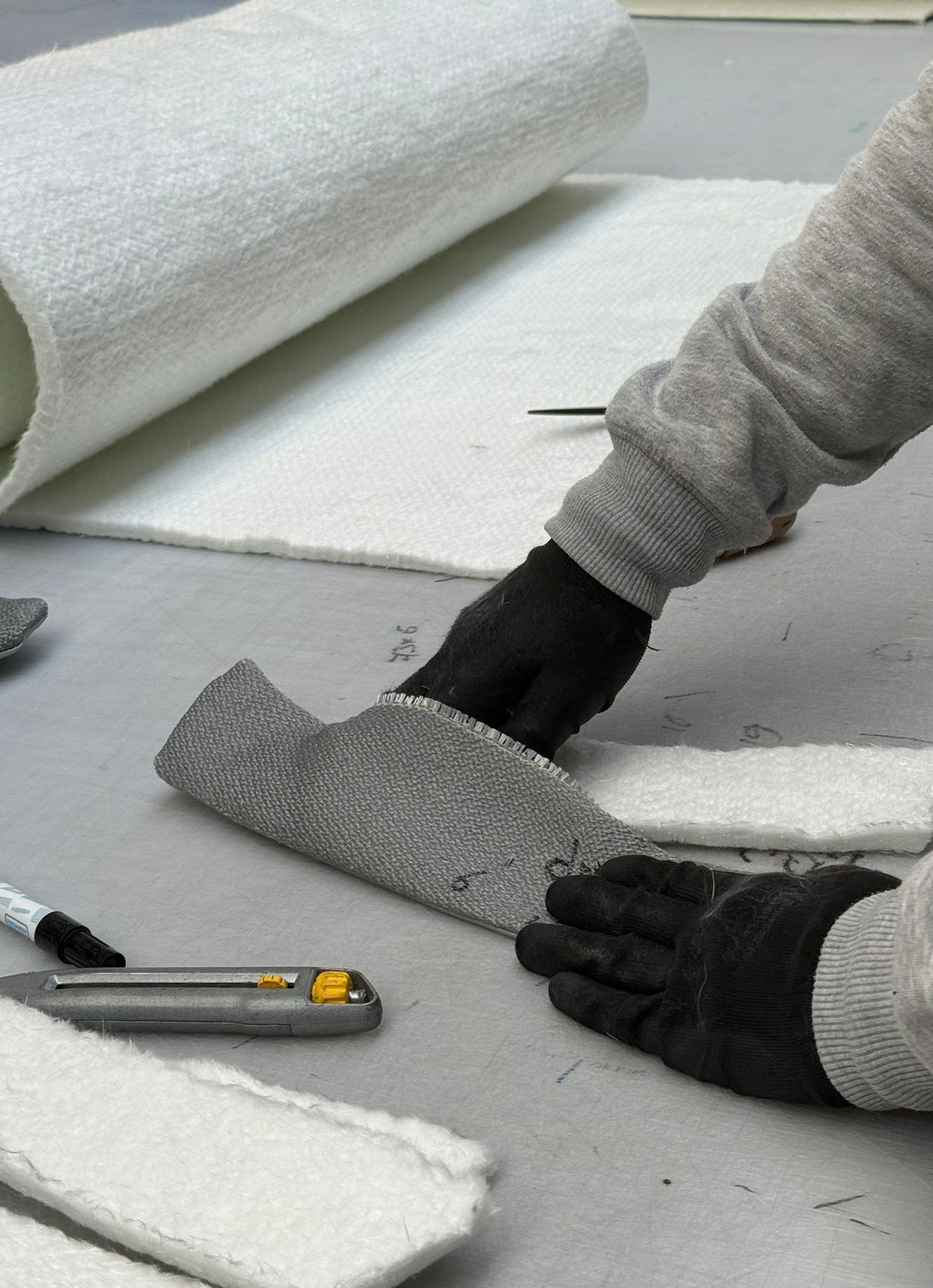 Тип ваты, её толщина и в принципе – наполнение под матрасы выбирается по ходу замеров. Влияют различные факторы, такие как: расположение (внутри или снаружи помещения). Если под 1 матрас наполнение будет иное, то это будет указано как на заготовке матраса (указывается при создании чертежа в электронном виде, затем на нарезке), так и на самом замерном чертеже.